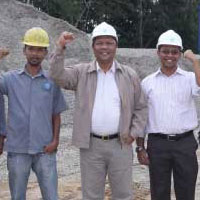 Kami memiliki dua buah baching plant, satu digunakan untuk pembangunan jalan dan lainnya untuk memproduksi tiang beton.